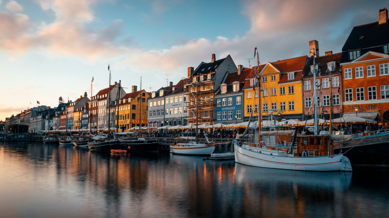 © Photo by Razvan Mirel on Unsplash. Description: Picture of Copenhagen - Sequence of houses in different colours near the port where some boats are anchored.